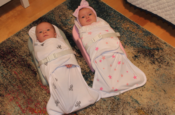 When we picked up the babies while they were in their swaddle systems, the support for the head, neck, and spine was noticeable. I didn’t feel like their heads were rolling around, as the twins are still working on their head control. It also keeps their hips straight while still allowing them to kick freely. We read on the Kepi website that this swaddle kit can reduce the risk of hip dysplasia. This was especially important for us to learn because our daughter spent the last trimester of my pregnancy in the breech position (putting her at risk for hip dysplasia).